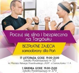 Zapraszamy na bezpłatne zajęcia samoobrony dla Pań 17 listopada godz. 19:00-21:00 Szkoła Podstawowa nr 52 im. Macieja Aleksego Dawidowskiego „ALKA” ul. Samarytanka 11 A 1 grudnia godz. 19:00-21:00 Szkoła Podstawowa nr 379 im. Szarych Szeregów ul. Turmoncka 2