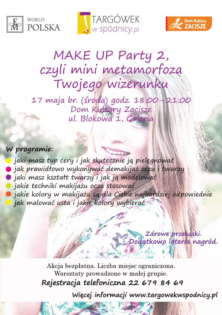 Zgodnie z zapowiedziami zapraszamy na kolejne MAKE UP Party, które odbędzie się 17 maja, o godz. 18:00 w Domu Kultury Zacisze przy ul. Blokowej 1.