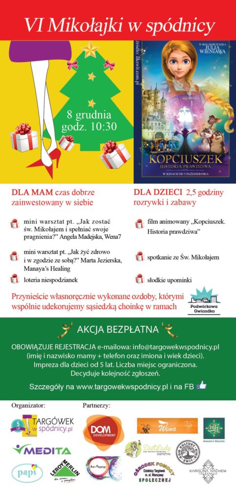 W programie przewidziany jest szereg atrakcji. Dzieci obejrzą film animowany pt. „Kopciuszek. Historia prawdziwa” i odwiedzi je Święty Mikołaj z workiem upominków, dzięki Dom Development.