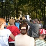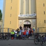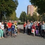 20 września wspólnie z mieszkańcami w ramach cyklu „Poznaj Targówek na rowerze” organizowanego przez stowarzyszenie Targówek w spódnicy i Fundację Otwarta Przestrzeń podziwialiśmy uroki Nowego Bródna. Wycieczkę rowerową po Bródnie, zabezpieczyła pod względem przedmedycznym Ratownicza Grupa Rowerowa, a trasę poprowadził już po raz kolejny doświadczony i lubiany przewodnik warszawski znany, jako Jarek Spacerolog Praski. Bródno to miejsce szczególne, gdzie pomiędzy blokami z wielkiej płyty kryją się perełki architektoniczne i historyczne obiekty. Na trasie zobaczyliśmy oryginalne tory tramwajowe (tory tramwajowe na Nowym Bródnie oddano do użytku 28.09.1924 roku) oraz bruk typu „kocie łby”, replikę przedwojennego przystanku tramwajowego a także dawny rozkład jazdy linii 21. Na terenie Bródna znajdują się również liczne miejsca pamięci narodowej przypominające nam o bohaterskiej przeszłości mieszkańców. Przed Parafią pw. Matki Bożej Różańcowej przy ul. Piotra Wysockiego 8, czyli najstarszej parafii w dekanacie bródnowskim zatrzymaliśmy się na dłużej. Niegdyś był to drewniany kościółek wybudowany przez społeczność lokalną, który mieścił się przy dawnej ul. Białołęckiej 38. Przed kościołem znajduje się pomnik poświęcony pamięci harcerzy z organizacji „Sokół” oraz mieszkańców Nowego Bródna i Pelcowizny poległym za wolność ojczyzny w I wojnie światowej. Wzniesiony w 1925 roku, a odrestaurowany w 1995 r. Tuż obok na rogu ulicy Piotra Wysockiego i Bartniczej znajduje się natomiast pomnik „Reduta Bródnowska” upamiętniający walki powstańcze prowadzone na Bródnie w sierpniu 1944 roku. Podczas wycieczki podziwialiśmy również szkołę w stylu baroku magistrackiego, drewniane domki typu podmiejskiego, ceglane resztki zabudowy warsztatów kolejowych, a także najstarszy polski pociąg elektryczny. Zobaczyliśmy, gdzie pracowała Irena Sendlerowa, urodził się Olgierd Budrewicz i gdzie wczesne dzieciństwo spędził Jan Kobuszewski. Znany aktor dramatyczny i komediowy urodził się w miejscu, w którym stoi Dom Kultury ŚWIT. Właśnie z tym miejscem była związana niespodzianka, którą przygotowałyśmy dla mieszkańców, czyli wizyta w Domu Kultury Świt. Oprowadził nas sam gospodarz, czyli Dyrektor Jacek Białek. Dzięki niemu mogliśmy zobaczyć miejsca na co dzień niedostępne, takie jak Projektornia, czy pełen skarbów strych z piecem do wypalania ceramiki. Na zakończenie wycieczki nagrodziłyśmy 5 uczestników, którzy wzięli udział w całym cyklu „Poznaj Targówek na rowerze” na: Zaciszu, Targówku Fabrycznym, Targówku Mieszkaniowym i Bródnie. Nagrody w postaci gadżetów rowerowych m.in. dzwonków, lampek rowerowych, płyt cd z zasadami ruchu drogowego, odblasków i książeczek dla dzieci mogłyśmy przekazać dzięki uprzejmości Pana Łukasza Puchalskiego, Pełnomocnika Prezydenta m. st. Warszawy ds. komunikacji rowerowej. Dziękujemy za wszystkie miłe słowa, uśmiechy, okazaną sympatię, wspólnie spędzony czas i zaangażowanie. Już teraz zapraszamy na kolejne jesienne akcje organizowane przez Targówek w spódnicy, które powstają z myślą o integracji społeczności lokalnej.