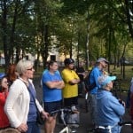 Obowiązkowym punktem wycieczki rowerowej było miejsce, w którym niegdyś znajdował się dworek założyciela Zacisza – Zygmunta Jórskiego, a także miejsce, gdzie wiek wcześniej mieszkał nauczyciel Chopina – Józef Elsner. Przy ulicy Teofila Piecyka posłuchaliśmy opowieści Stefana Wiecheckiego ,,Wiecha”. Poznaliśmy także mroczne historie Zacisza. Zobaczyliśmy miejsce, gdzie znajdowały się dwa rosyjskie forty Twierdzy Warszawa – Lewicpol i Lewinów. Wielu uczestników wycieczki zaciekawiła informacja, gdzie na Zaciszu w latach 1942-1943 prowadzono tajne kursy szkoły podchorążych Armii Krajowej 6-XXVI Obwodu Praga. Dowiedzieliśmy się także, że w okolicach ulicy Łodygowej w czasie Kampanii Wrześniowej zginął w tajemniczych okolicznościach niemiecki generał baron von Fritsch oraz że tam został pochowany. Obejrzeliśmy najbardziej dziwacznego gargamela w Warszawie. Na koniec ze specjalną dedykacją dla organizatorek z stowarzyszenia „Targówek w spódnicy” i fundacji „Otwarta przestrzeń” przejechaliśmy się rowerami tą częścią Zacisza, której ulice noszą nazwy kobiecych bohaterek literackich.