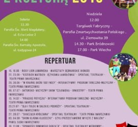 Podwieczorki z kulturą dla dzieci, czyli spotkania artystyczne w plenerze Trwa 5 sezon artystycznych spotkań dla dzieci w plenerze, którego projektodawcą jest Targówek w spódnicy. Zaczynamy warsztatami bębniarskimi. Byliście wczoraj? Wybieracie się dzisiaj? Różne lokalizacje i godziny. Do zobaczenia SOBOTA ➡️11.30 teren przy Parafia Marii Magdaleny Echa Leśne ➡️14.00 […]